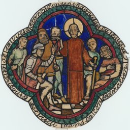 Le carton se compose de trois scènes superposées relatant différents épisodes de la vie de Nicolas de Flüe, inscrites dans une croix de Saint-Thomas.